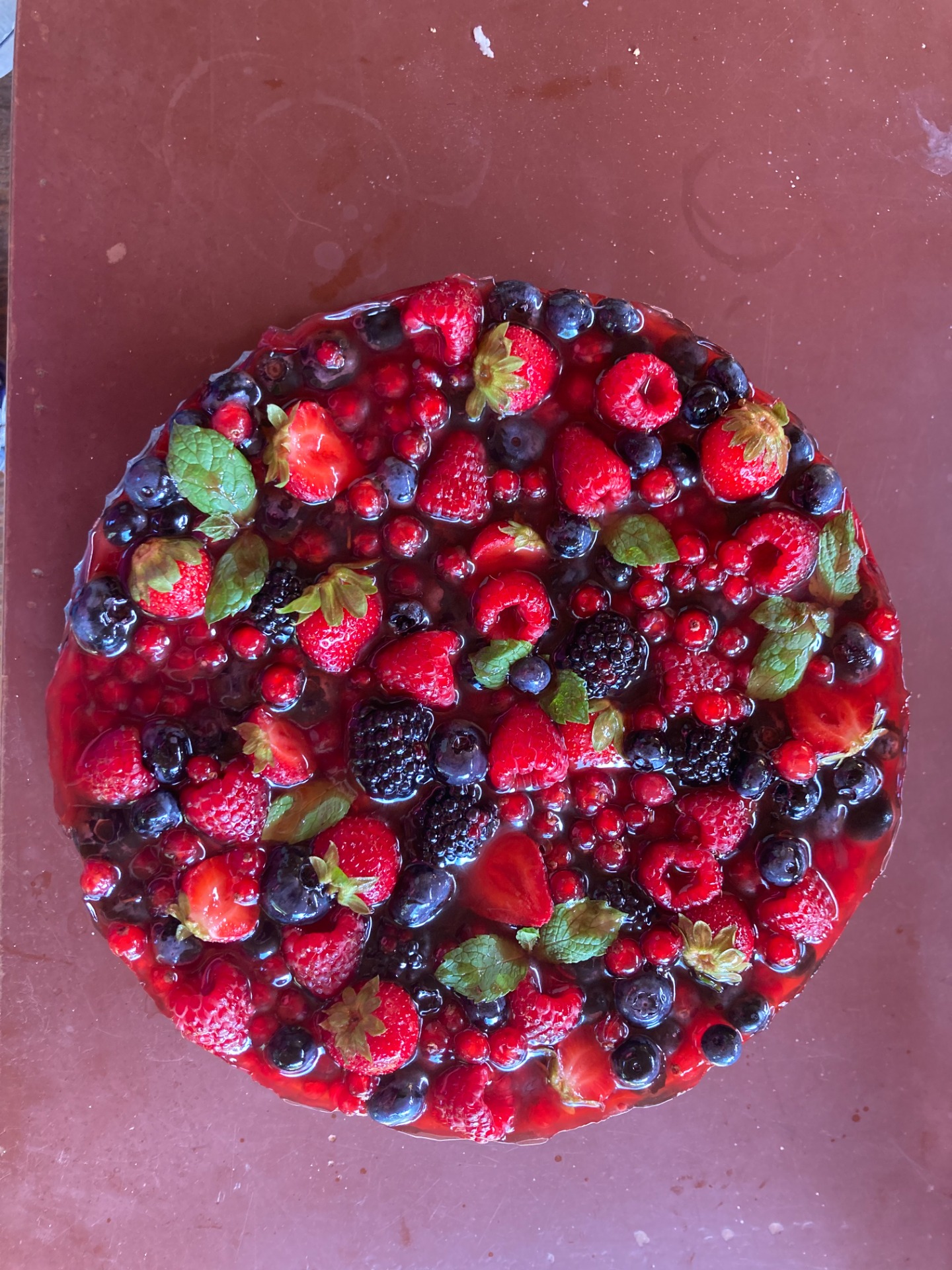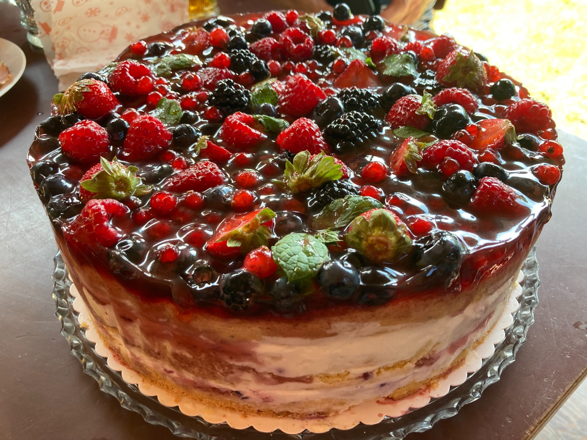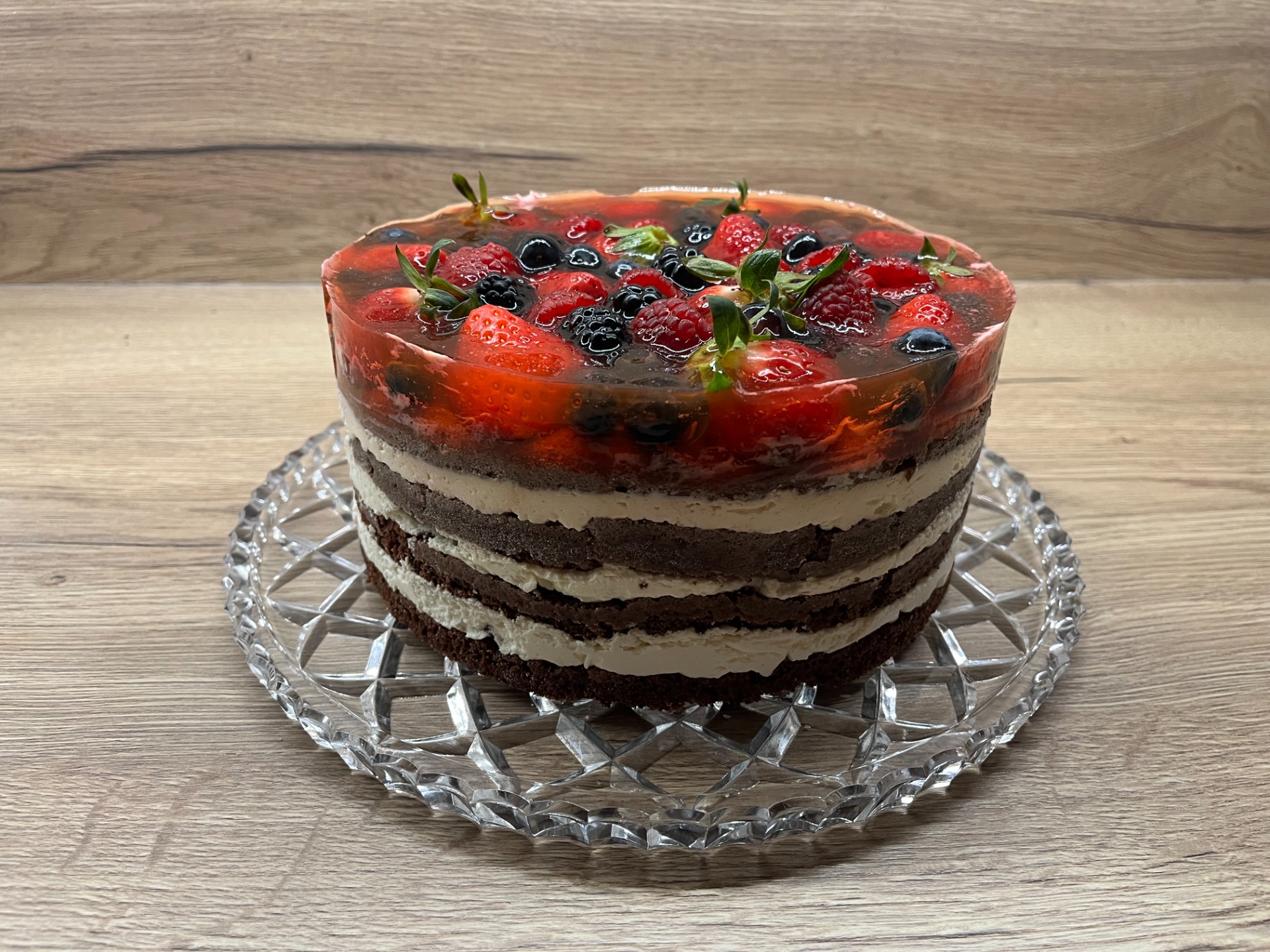 Lahodný dort zdobený bohatou směsí čerstvého ovoce – jahody, ostružiny, rybíz, borůvky a další dle sezóny. Dokonalá kombinace svěžesti a sladké chuti pro každou příležitost!